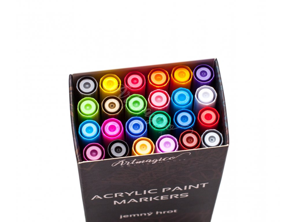 Akrylové fixy v sadě 24 kusů s jemným hrotem o šíři linky 1 mm v prémiové kvalitě. Perfektní inkoust se skvělými krycími vlastnostmi vhodný pro všechny typy malby a kreativní tvorby. Díky hrotu z porézního vlákna je použitelný na všechny povrchy a při práci neodstřikuje ani méně zdatnému malíři.